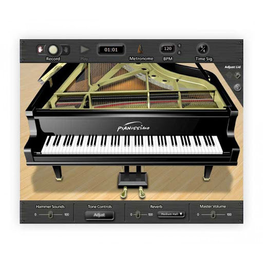 ianissimo virtual piano uses a combination of sample playback and advanced physical modeling to create a stunning acoustic grand piano sound. Starting with 250 MB of high quality samples of a Steinway™ Model D grand piano, Pianissimo uses complex signal processing and programming to recreate the warmth, response, and playability of a real grand piano. Add in modeled sympathetic resonance, incidental mechanical hammer sounds, remarkable control over tone and velocity response, 256 voices of polyphony, and incredibly low CPU usage, and Pianissimo might just be the best sounding, most playable virtual piano ever.
