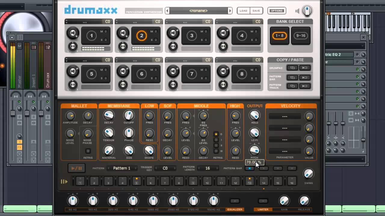 Drumaxx gives you control over multiple parameters such as material, thickness, tension and shape. More importantly, the parameters can be modulated in real-time as a function of velocity or external controls. The drum body is also under user control too, including body material, size, vibration damping, and shape. All this gives you multi-dimensional performance options, a Matrix of variables providing nearly infinite possibilities.