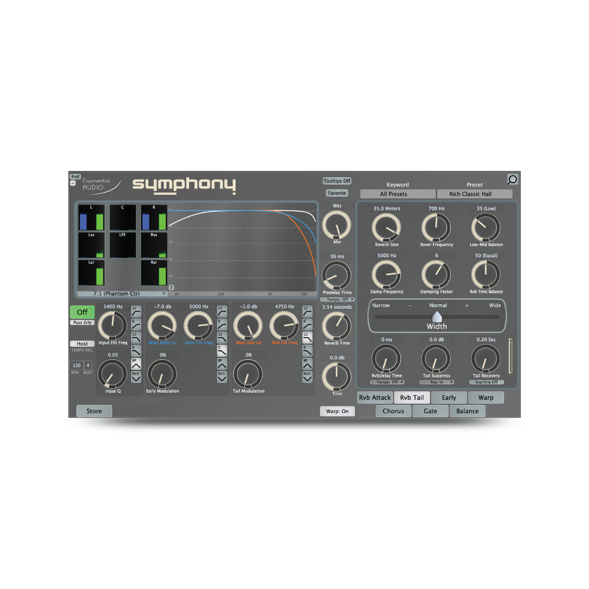 Our lush, colorful reverb engine gets a multichannel upgrade in Symphony. Offering support for up to 7.1 surround, Symphony delivers a rich, character-filled reverb tone for any music or post production project. With channel-specific Balance controls and an expanded Warp section with Compression and Overdrive modules, Symphony takes the creative power of R2 Surround and R4 and pushes it even further.