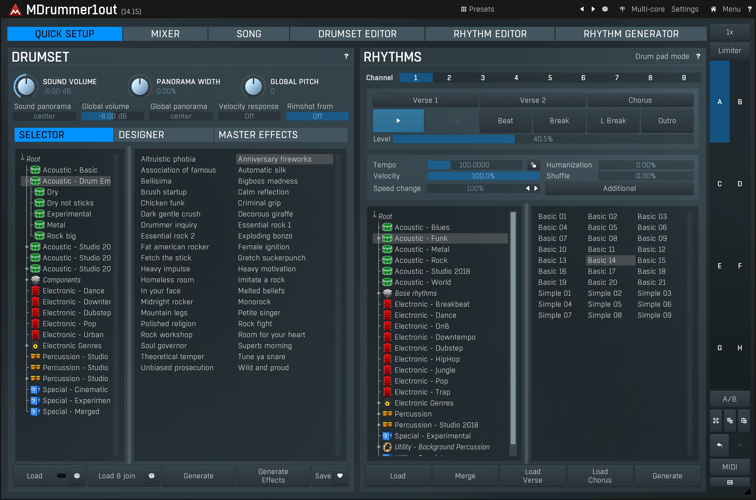 MeldaProduction MCompleteBundle is the ultimate collection of effects and instruments, and it currently contains 114 of them, including MDrummer, MSoundFactory, MPowerSynth, dynamics processors, equalizers, modulation effects including chorus and phasers, reverbs, stereo tools and analyzers.