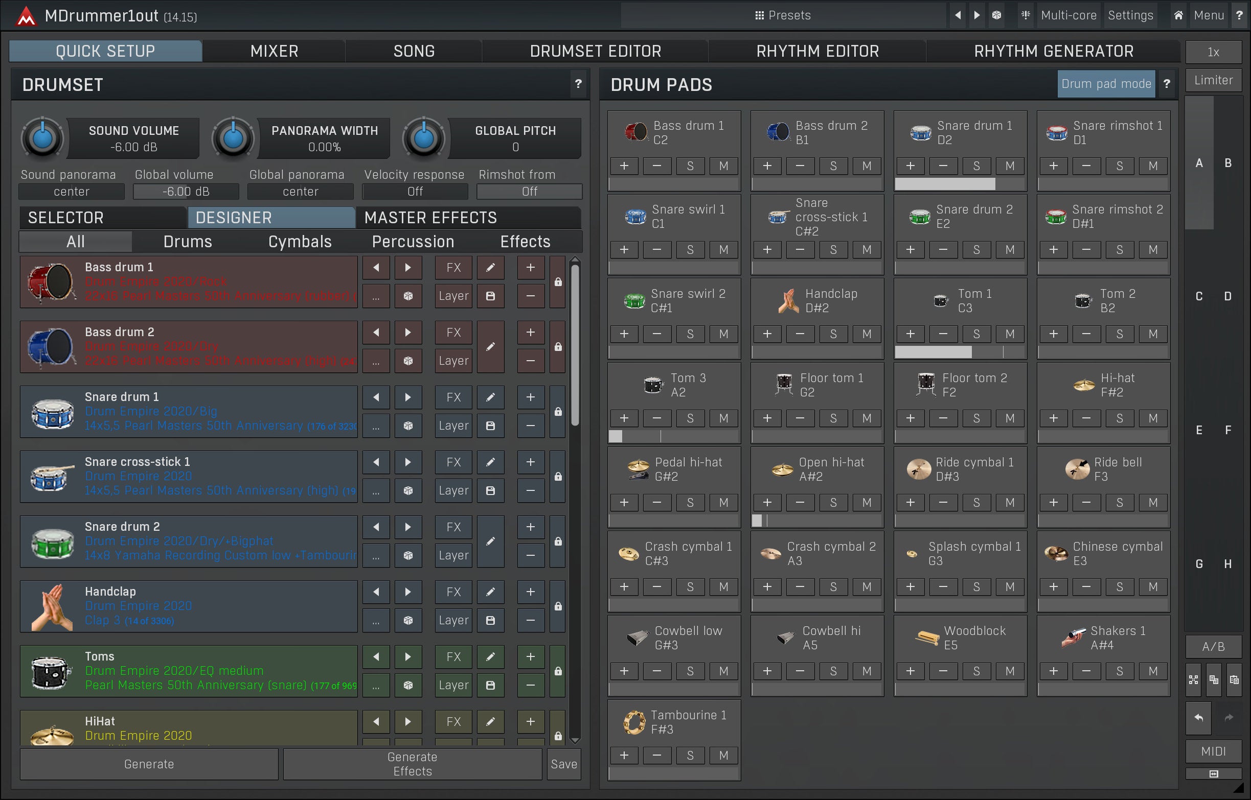 MDrummer can generate infinite number of new drum sets by pressing a single button, analyze and import your sample libraries, merge multiple drum sets and much more. MDrummer is perfect whether you are looking for a traditional style, a truly unique sound available by a few clicks, or if you are ready to get dirty and explore the depths of the most advanced drum machine in the world.
