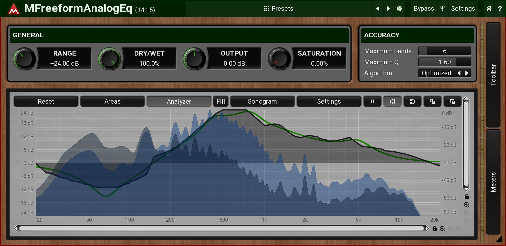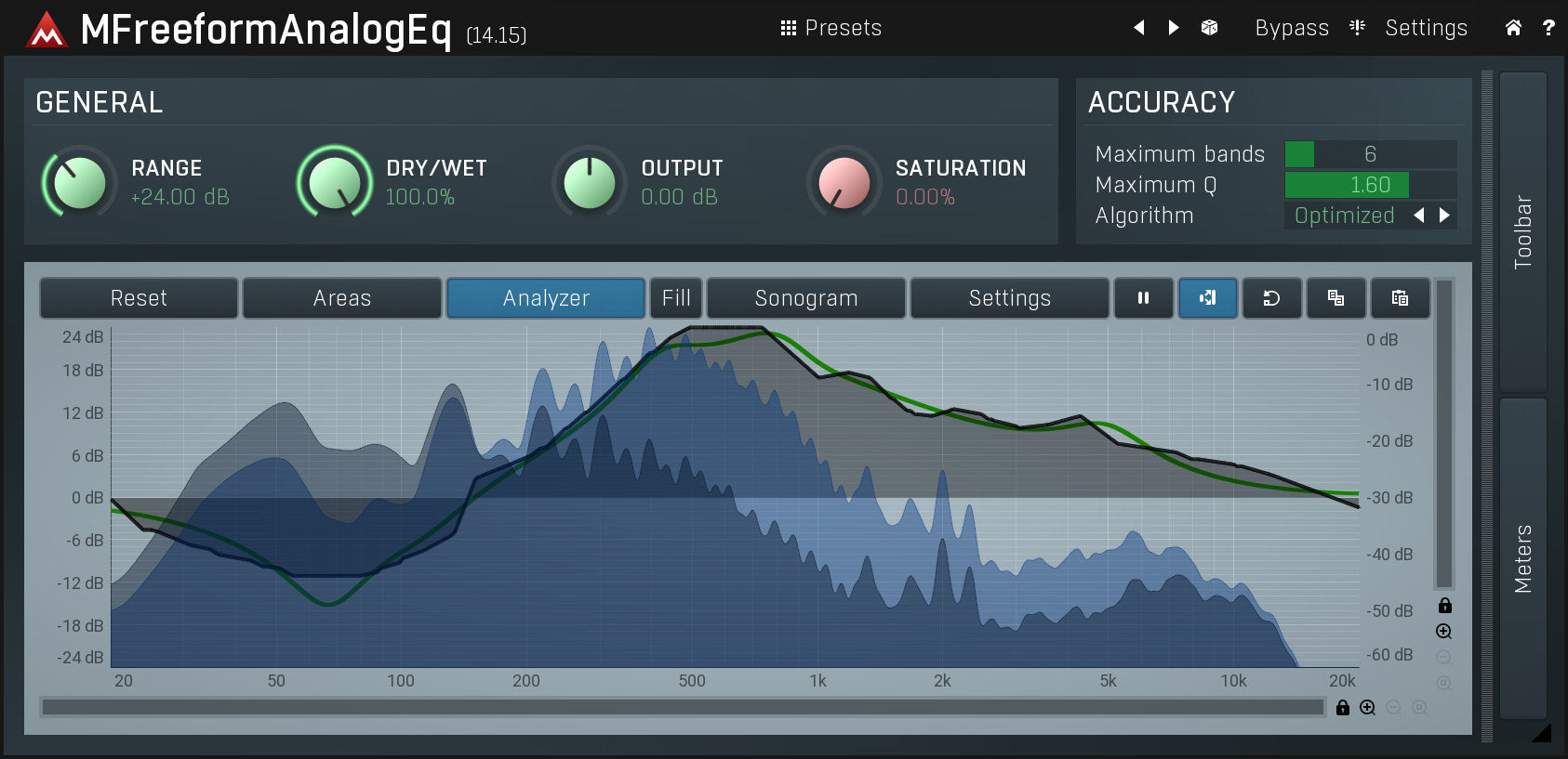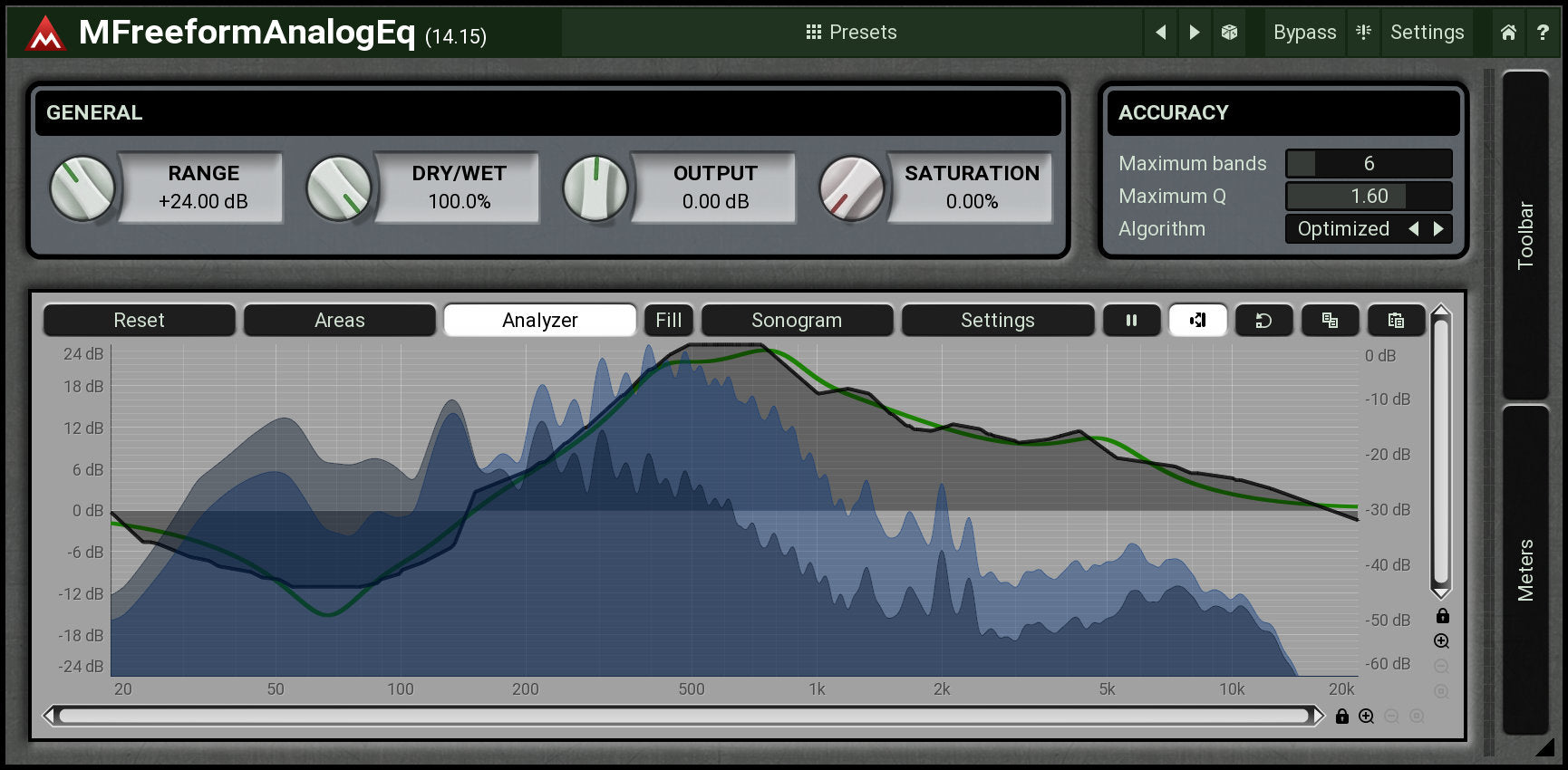 MFreeformAnalogEq uses our filter-adaptation technology to make your dreams come true - no more messing about with the settings of multiple parametric filters. Just draw what you want and the plugin finds the most accurate settings for the parametric filters. And it sounds great!
