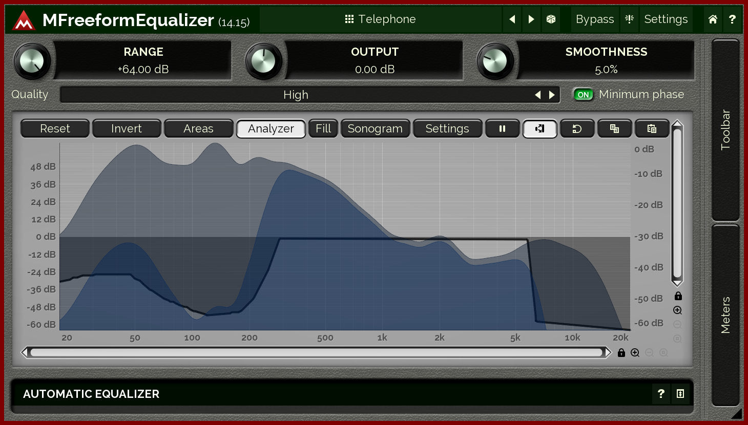 Some things just cannot be done with traditional equalizers. MFreeformEqualizer breaks all those limitations. Just draw the equalization that you want and the plugin will make it happen!