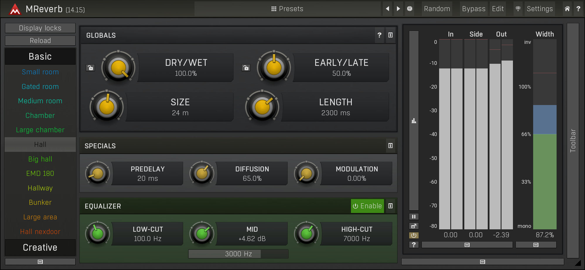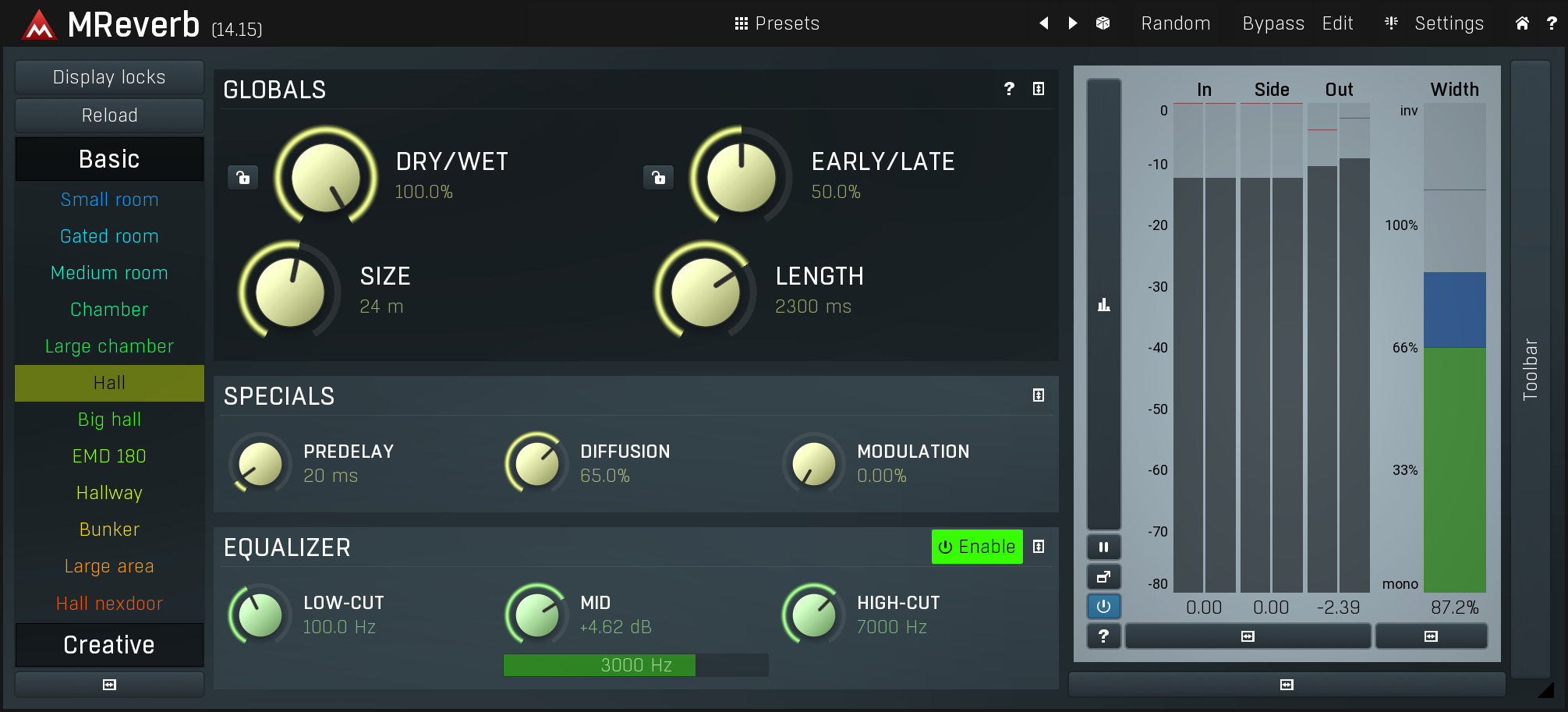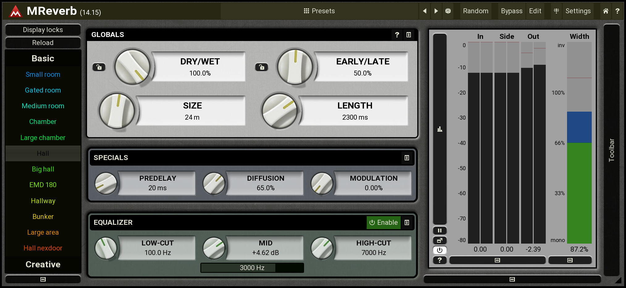 MReverb is not only a realistic space simulation, it's also the world's first reverb with a spatial positioning system. With its extensive feature set, it's also an exceptionally creative plugin.