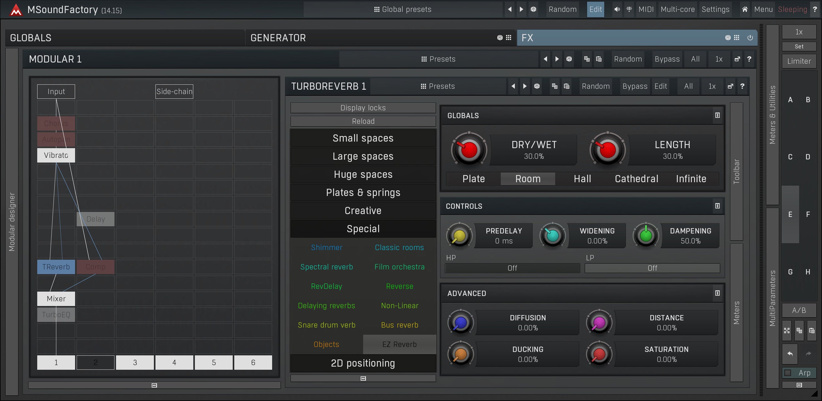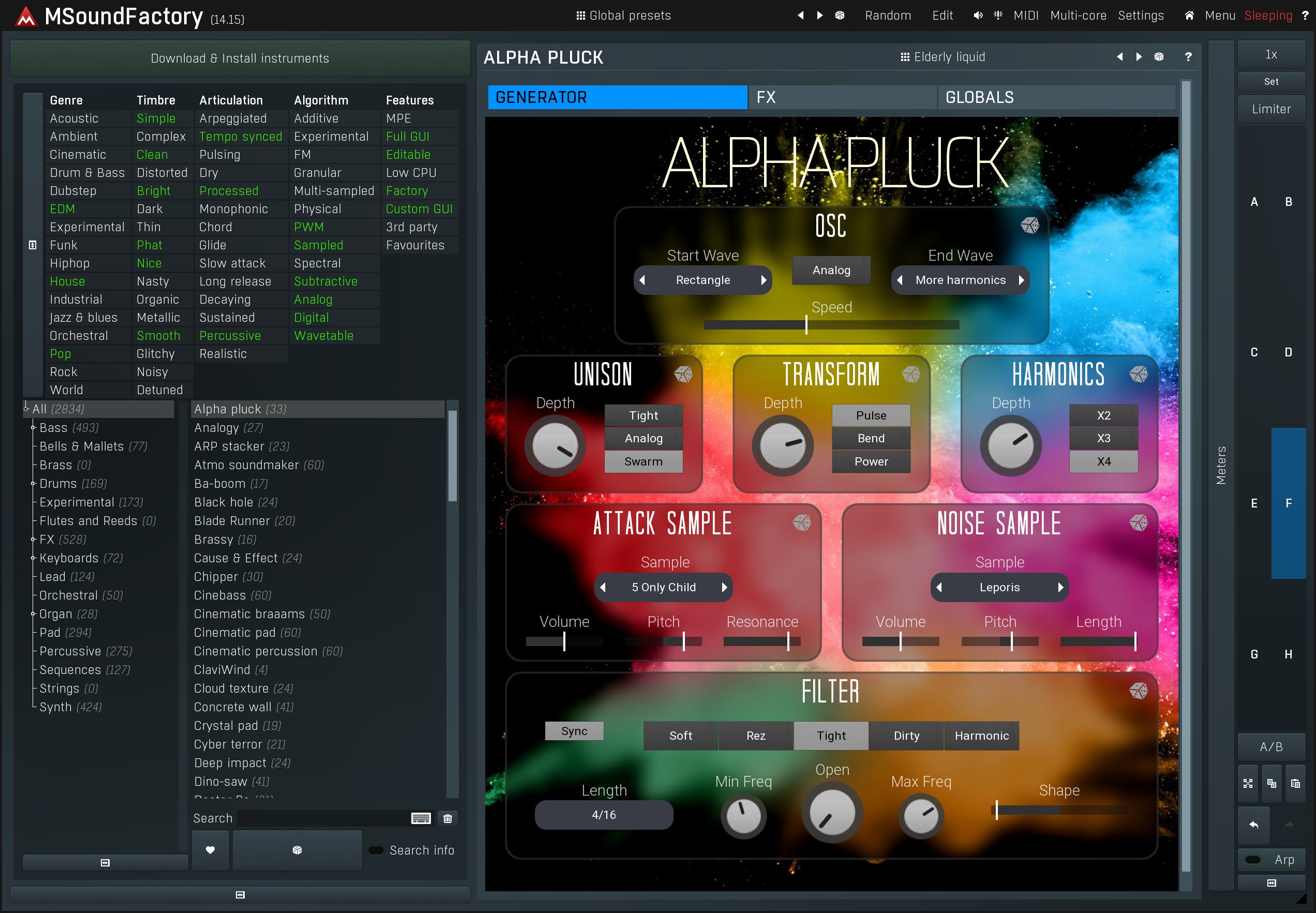 MSoundFactory may well be the most powerful instrument out there. It's modular, so you can have any number of oscillators, filters, samplers etc. you want. It features per-voice and global modulation, full MPE support, the best sounding oscillators on the market, a fully modular effects engine... And we are just getting started.