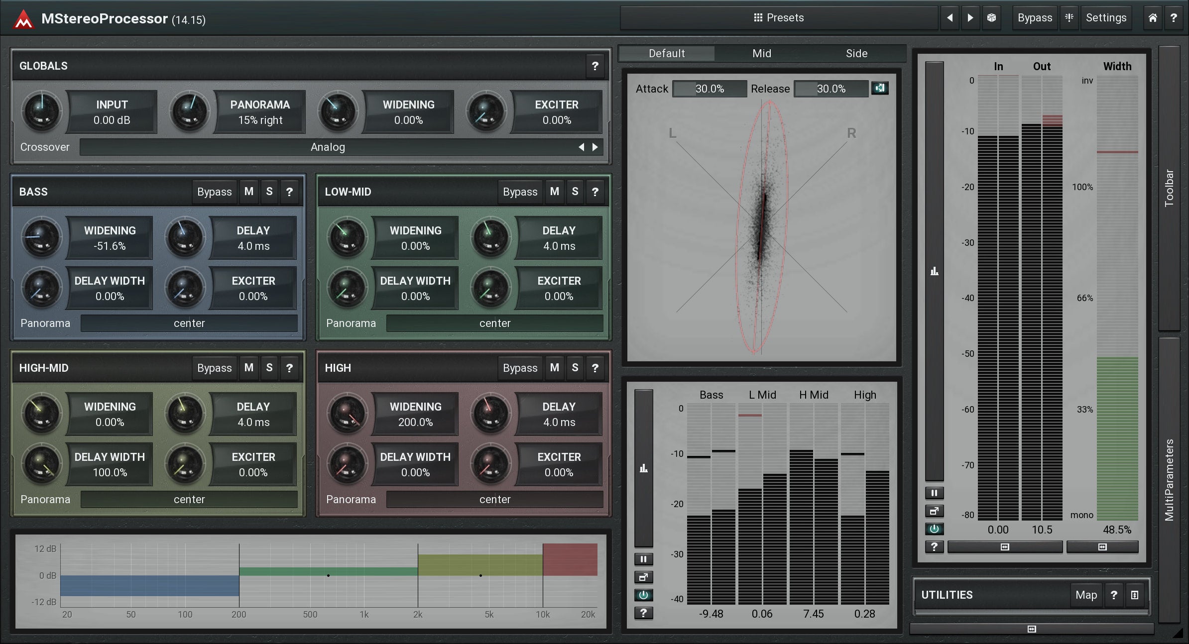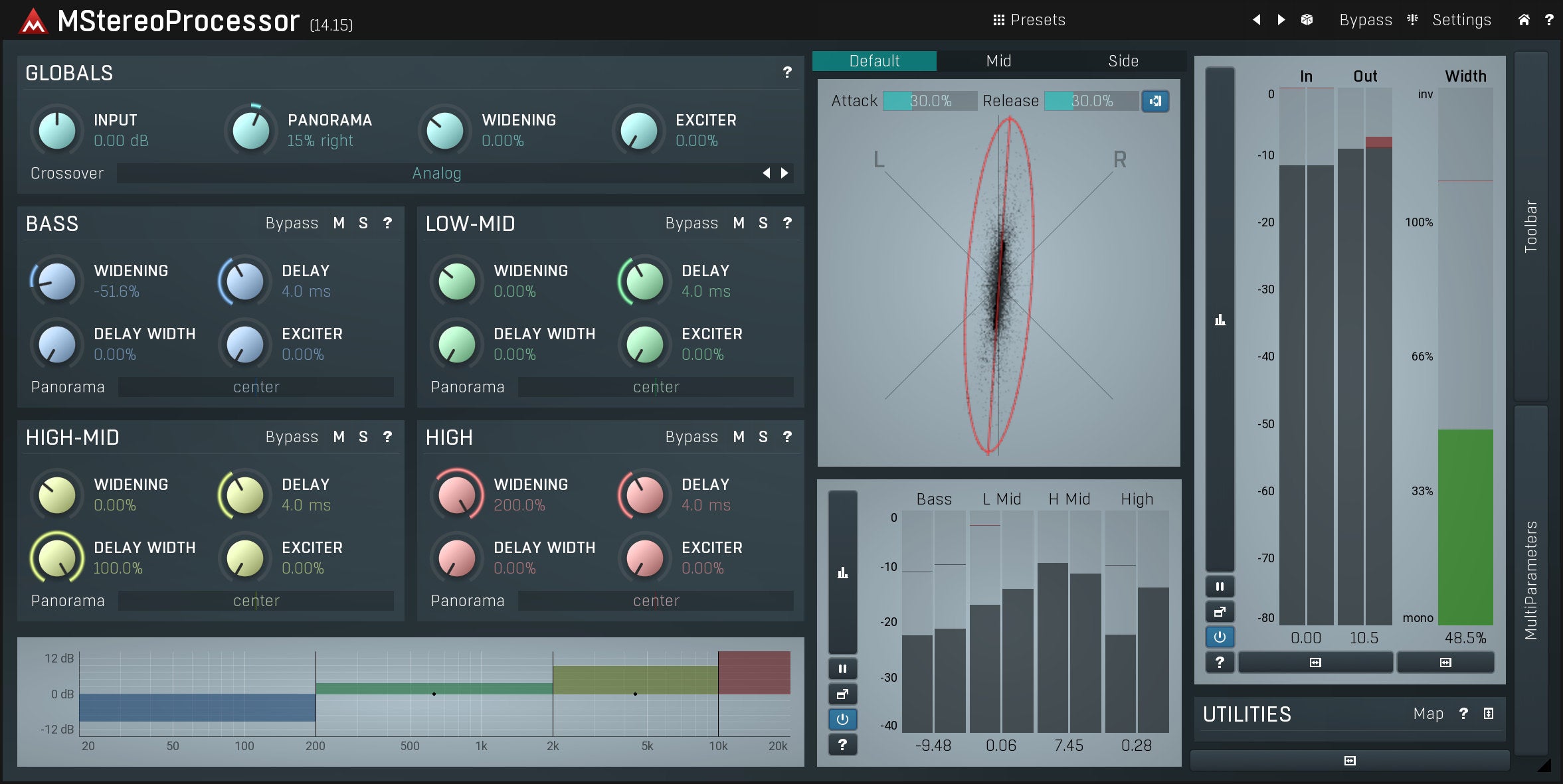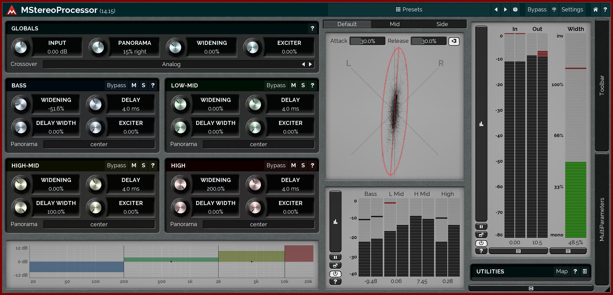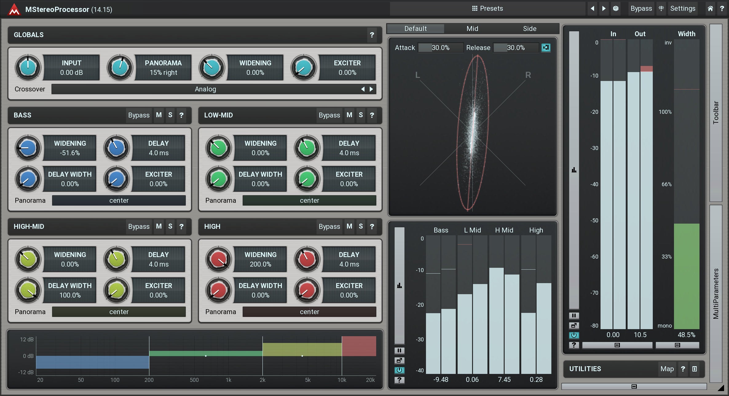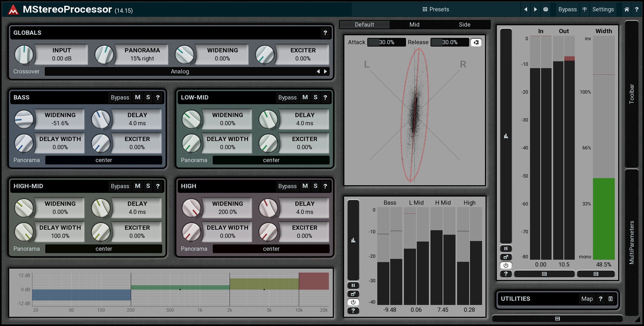 MStereoProcessor is an advanced mastering multiband stereo analyzer and enhancer plugin, which lets you easily control the stereo image and the necessary perception of depth and space.