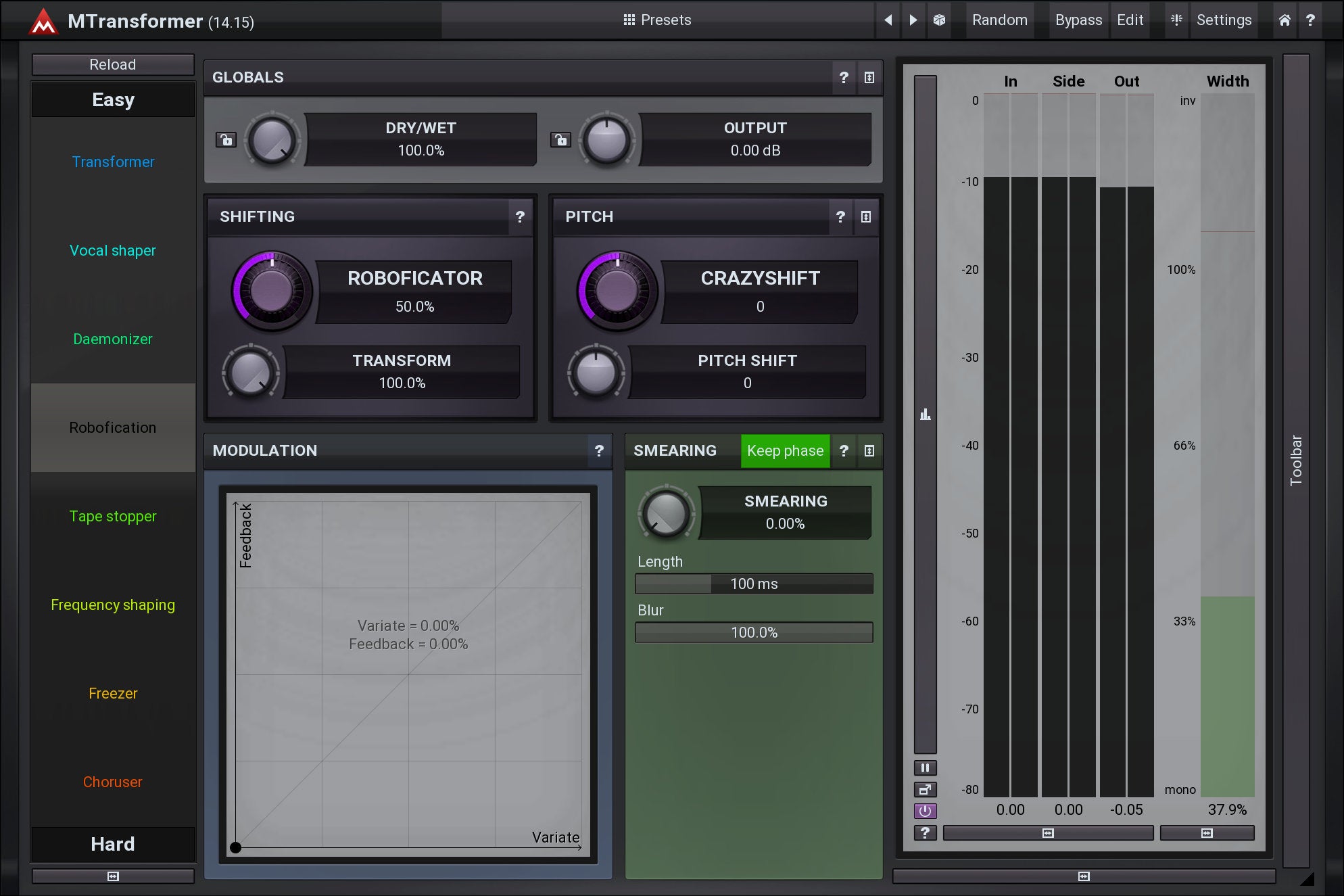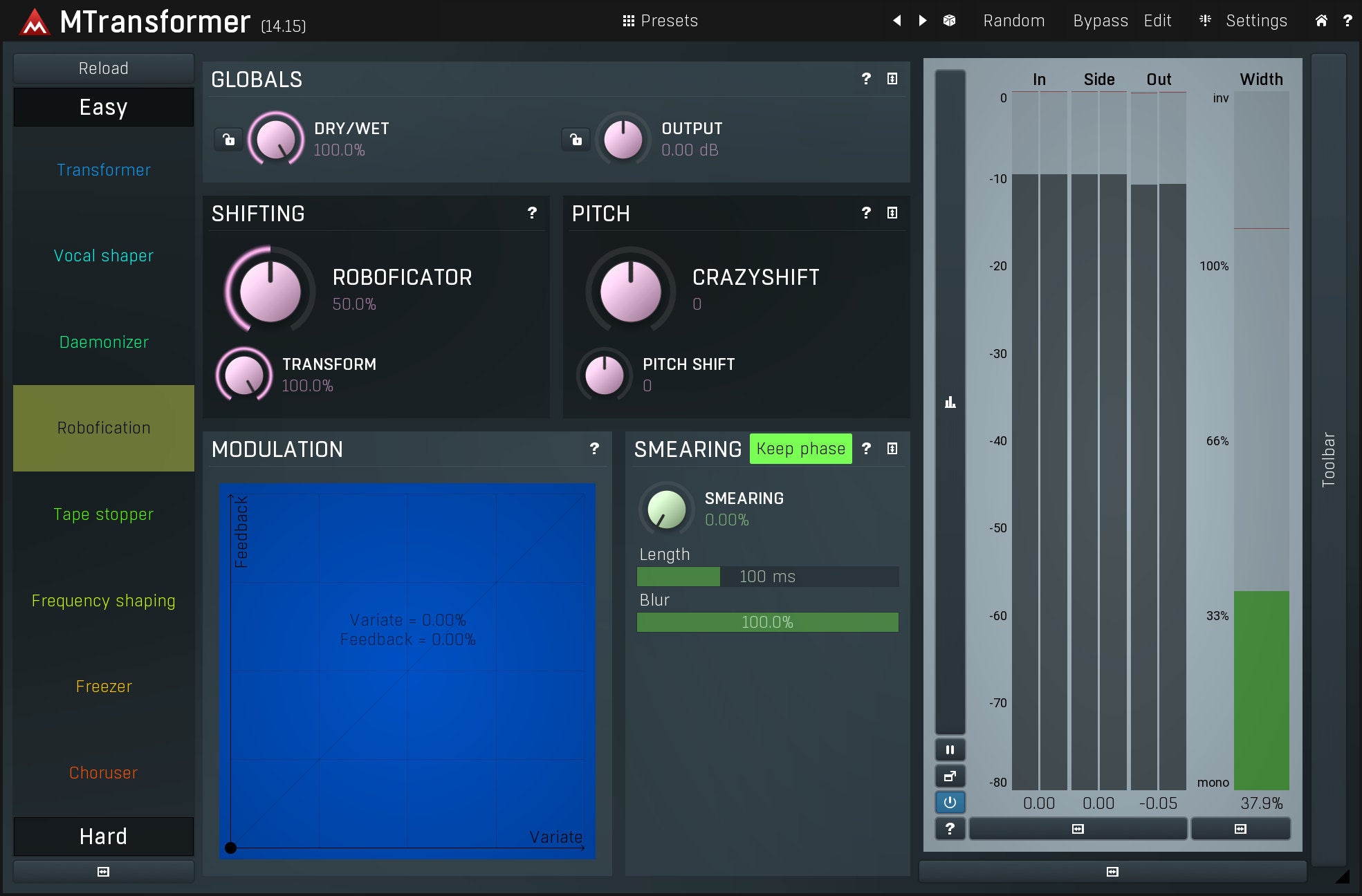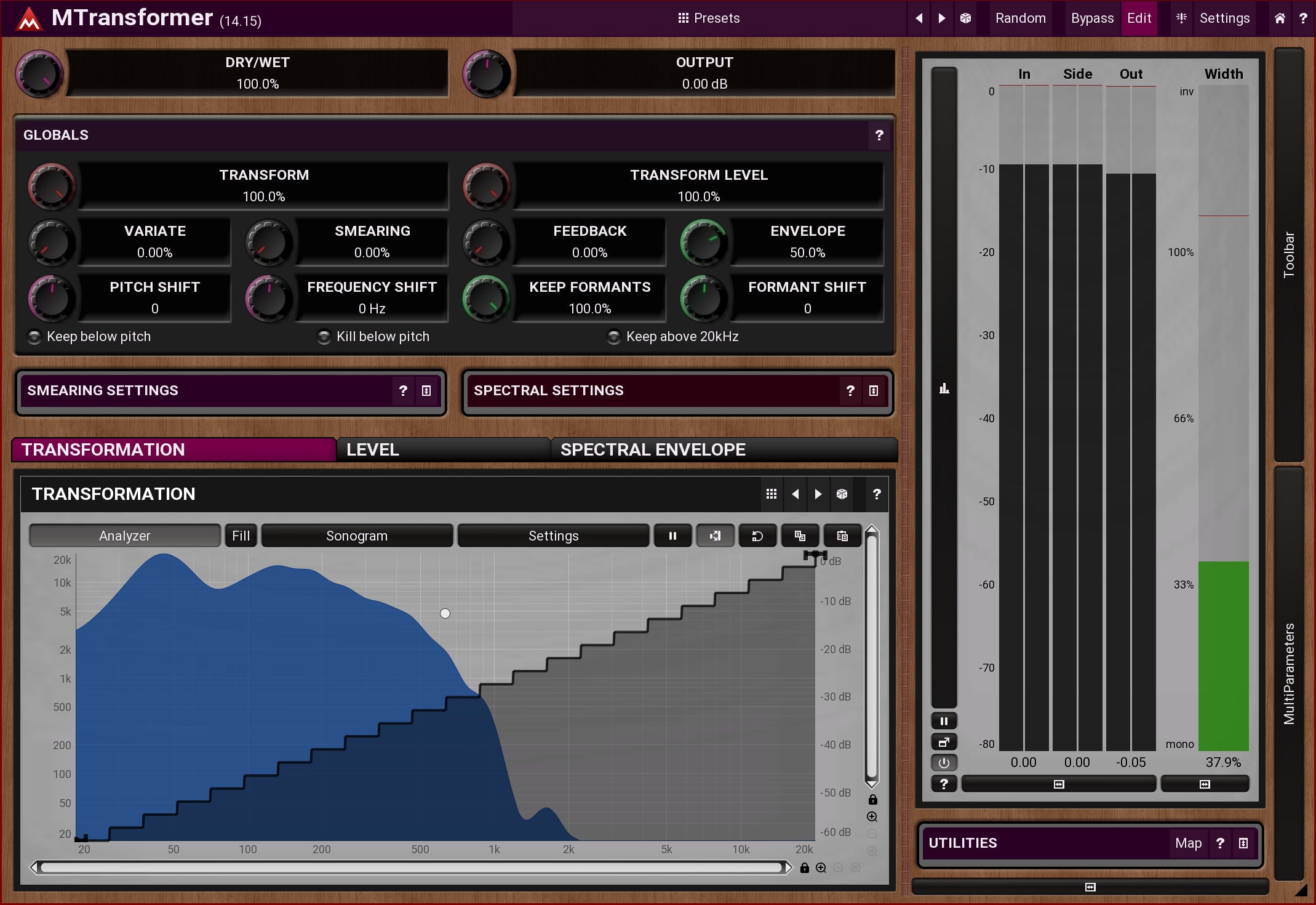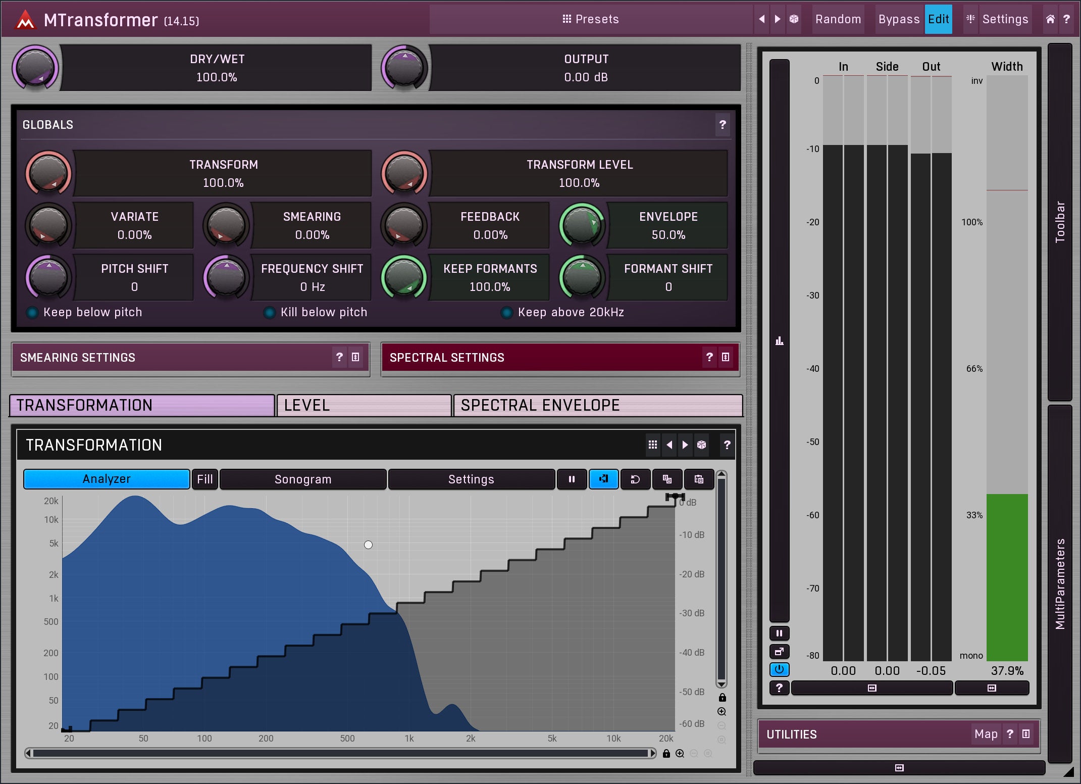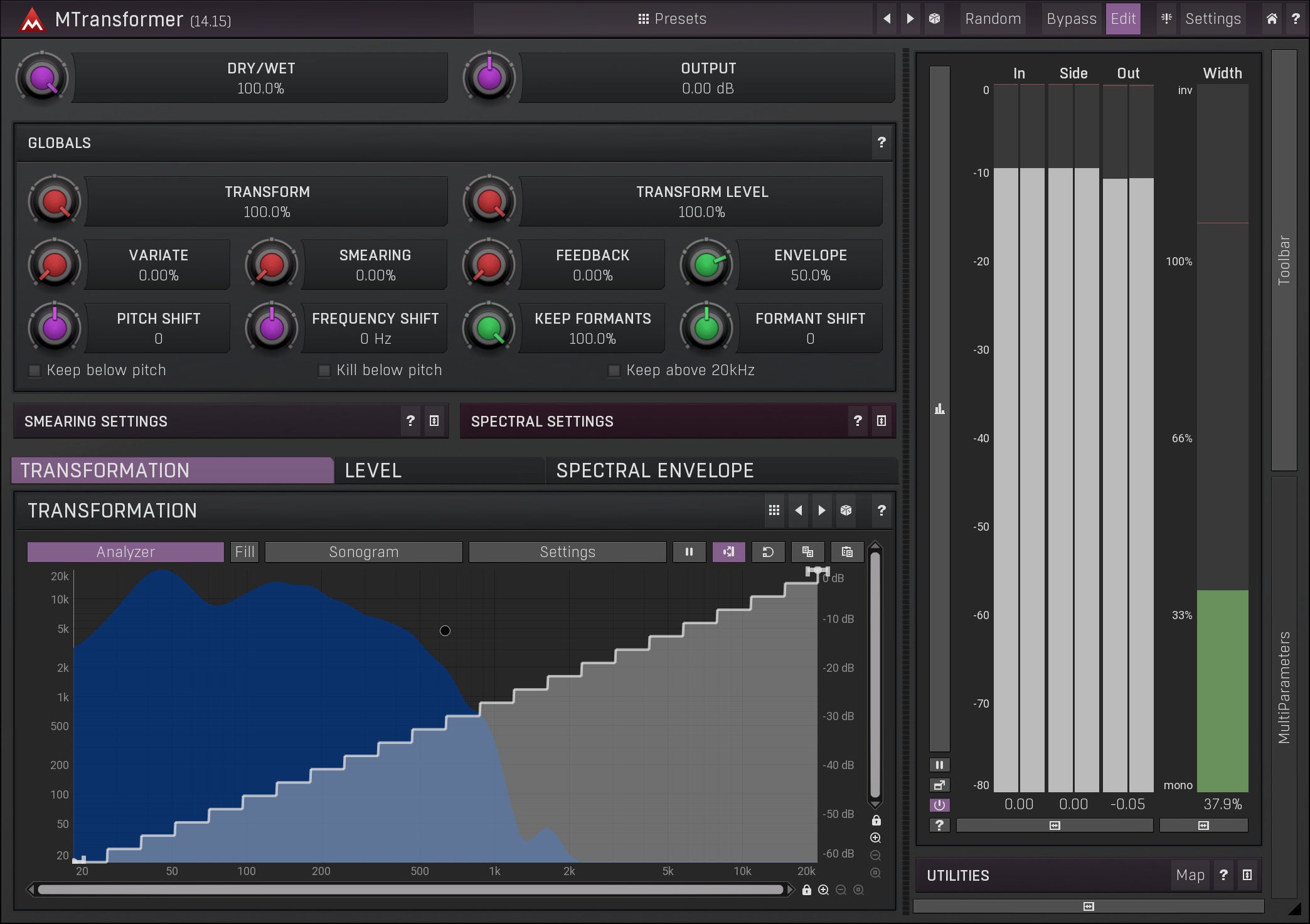 Pitch shifting, frequency shifting, daemonic and robotic voices... that's MTransformer, a unique spectral processor that lets you transform any frequency to any other, transform their levels.