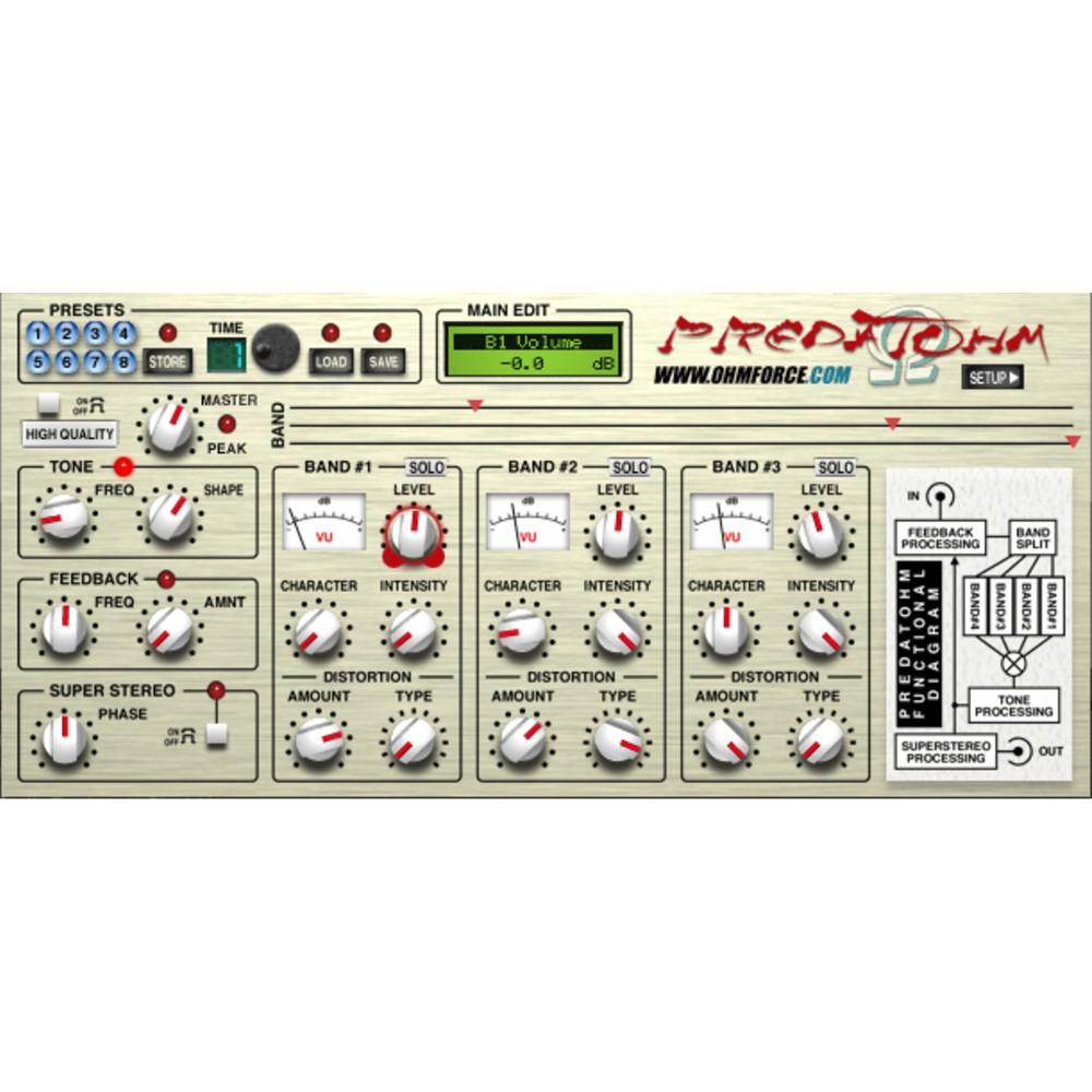 To put it technically, Predatohm is a 4-band distortion with compressor/expander features for each band. To start with, on each channel 13 distortion types cover a wide range of options. Moreover, they control not only tones but also stereo widener for mono-to-stereo processing and a creative feedback generator.