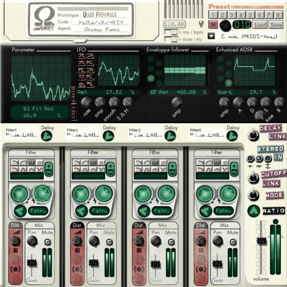 4 bands, each one featuring tempo-syncable delay, pan, 8 types of filter and distortion, and controls for cut-off frequency, resonance, fatness, colour, and damping. They can be connected in every possible way, allowing for creative remixing before the final output stage.