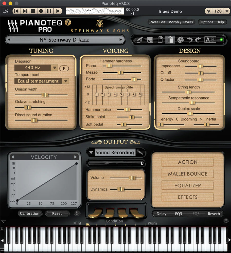 By being physically modelled, Pianoteq PRO brings you an extremely sophisticated tool for sound shaping and instrument creation, letting you create your own unique sounds that will enrich your projects. The PRO version works with internal sample rates up to 192 Khz. By using its powerful Note Edit feature, you are able to adjust physical parameters for specific ranges, and even note by note. You can also turn any Pianoteq instrument into a multi-instrument by using advanced keyboard splits for up to 105 notes (concerns instruments with extended octave range).