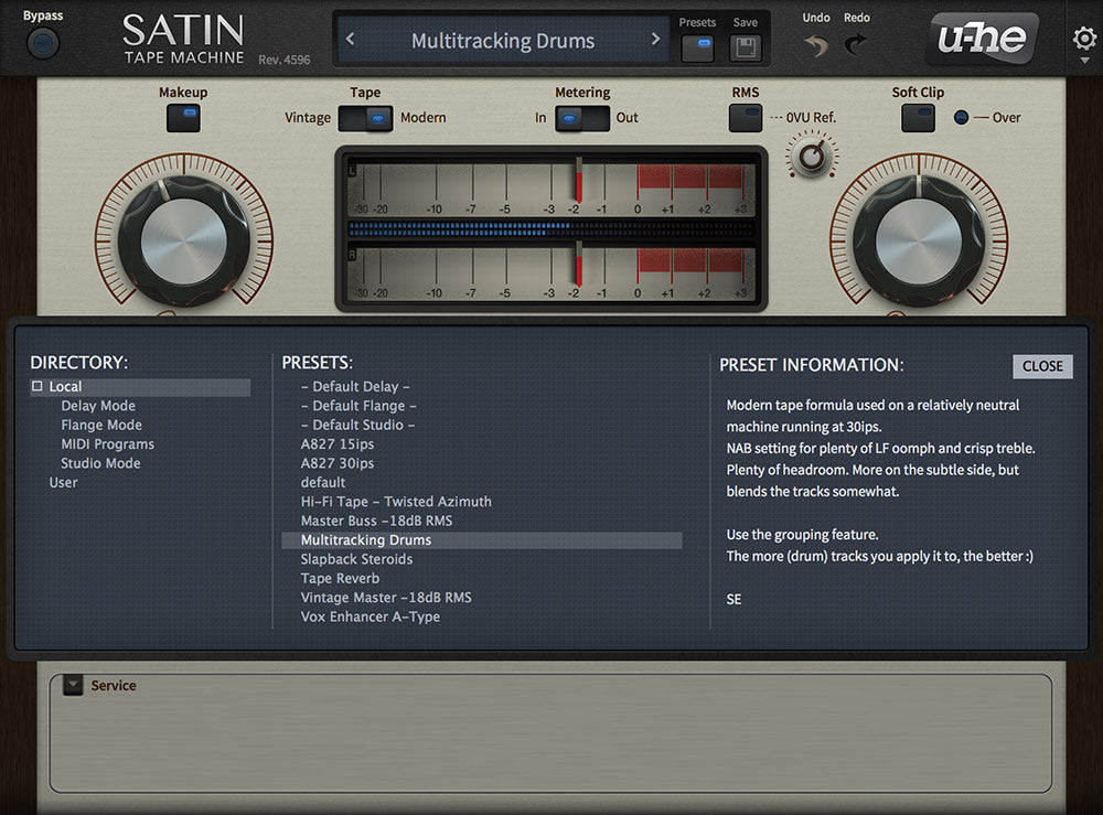 Tape Simulation Plug-In (Download)Scalable tape saturation in the modular principle through freely combinable elementsGrouping function for cross-track usageBelt speeds of 4.75 - 76.2 cm / sTwo types of...