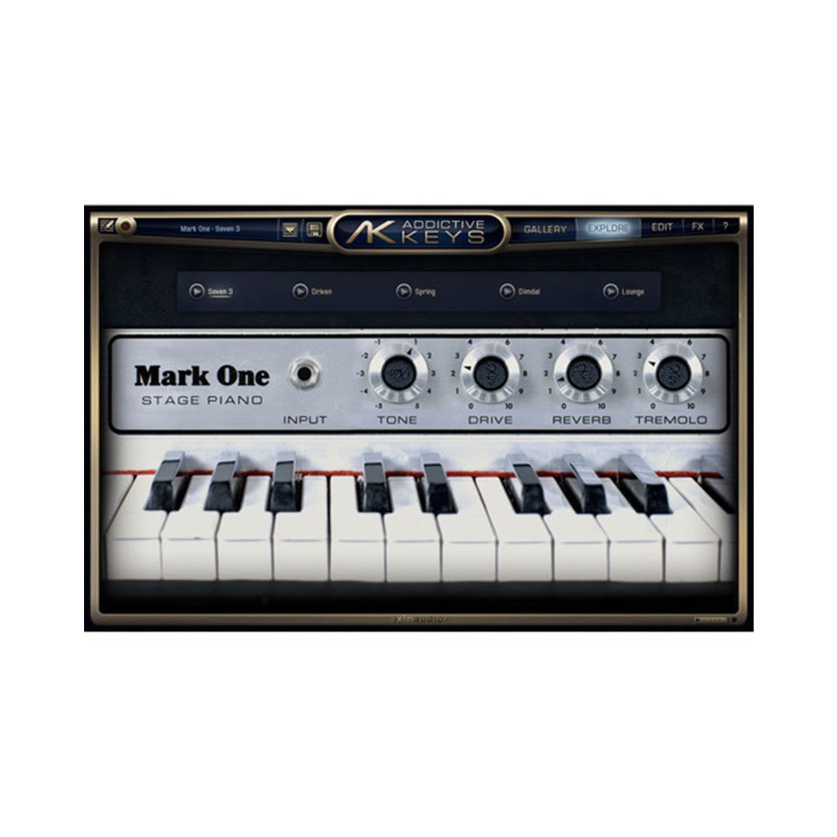 Our Mark One Instrument is based on a Fender Rhodes Mk. 1 electric piano. This king of electric pianos is played through a vintage tube combo amp and captured by rare vintage mics for a sublime sound. The tone can go from a smooth enthralling caress to a searing, crunchy sound that cuts through the densest mix.