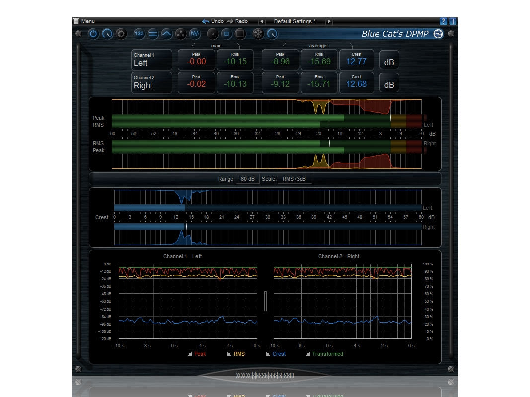Large colored statistics displays following your own scales are included for an overview of a track, while histograms give you a precise measurement of the dynamic range of the track. The graphs show the evolution of the audio envelopes over time, and the mid-side switch lets you verify mono compatibility problems and check the "stereoness" of your audio sources very easily. Whether you are working with mono, stereo or surround tracks, this plug-in will fit into your workflow.