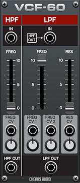 VCF-60 is a separate module containing the highpass and lowpass filters from the DCO-60 vintage synthesizer module. With independently patchable sections and a self-resonating lowpass section, it's the perfect replication of the classic 80's Juno synth sound.