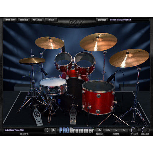 ProDrummer Volume 1 from EastWest is a virtual drum instrument with sounds produced by Joe Chiccarelli and Doug Rogers, and the drums played by Matt Chamberlain (Pearl Jam, Bruce Springsteen, Peter Gabriel, etc.). Included are pre-mixed drum kits that can be extensively processed using the included effects, and over 14,000 MIDI drum grooves in different styles. Searching for the right grooves is easy with a groove 'search engine', and song assembly is possible right inside the built-in sequencer, or drag them into a DAW.