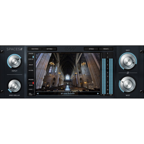 EastWest Spaces II is a 24-bit, true stereo convolution reverb plug-in. It comes with 1020 reverbs recorded in spectacular locations worldwide from stunning concert venues: from Abravanel Hall in Salt Lake City, Reynolds Hall in Las Vegas, and the War Memorial Opera House in San Francisco, to exquisite-sounding churches like St. Patrick's and St. Dominic's, to unique and extraordinary sounding locations like catacombs and Union Station in Los Angeles, and many more. Also included is a collection of 372 instrument-specific reverbs plus all the reverbs from Space I. Space II's high-resolution, convolution engine delivers realistic spaces at a very low CPU load, allowing engineers and sound designers to place their instruments in the precise acoustic environments of their choice.