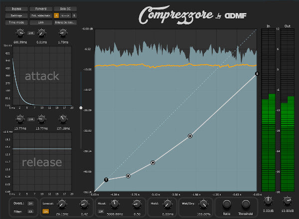 Comprezzore is your go-to plugin if you want to have full control over the dynamics of your audio material. It is a feature-laden compression plugin that is explicitely NOT modelled after any hardware, but rather tries to explore what is possible these days with a state-of-the-art compression algorithm. Comprezzore puts all the levers in your hands, from the drawable compression curve to widely tunable attack and release settings. Whether you want to shape your transients in any conceivable way, slightly glue your tracks together or smash everything into oblivion, Comprezzore will be more than happy to help.