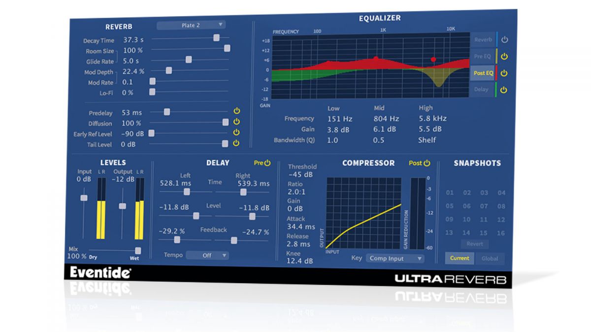 Four independent three-band EQs (Pre, Post, Reverb and Delay)