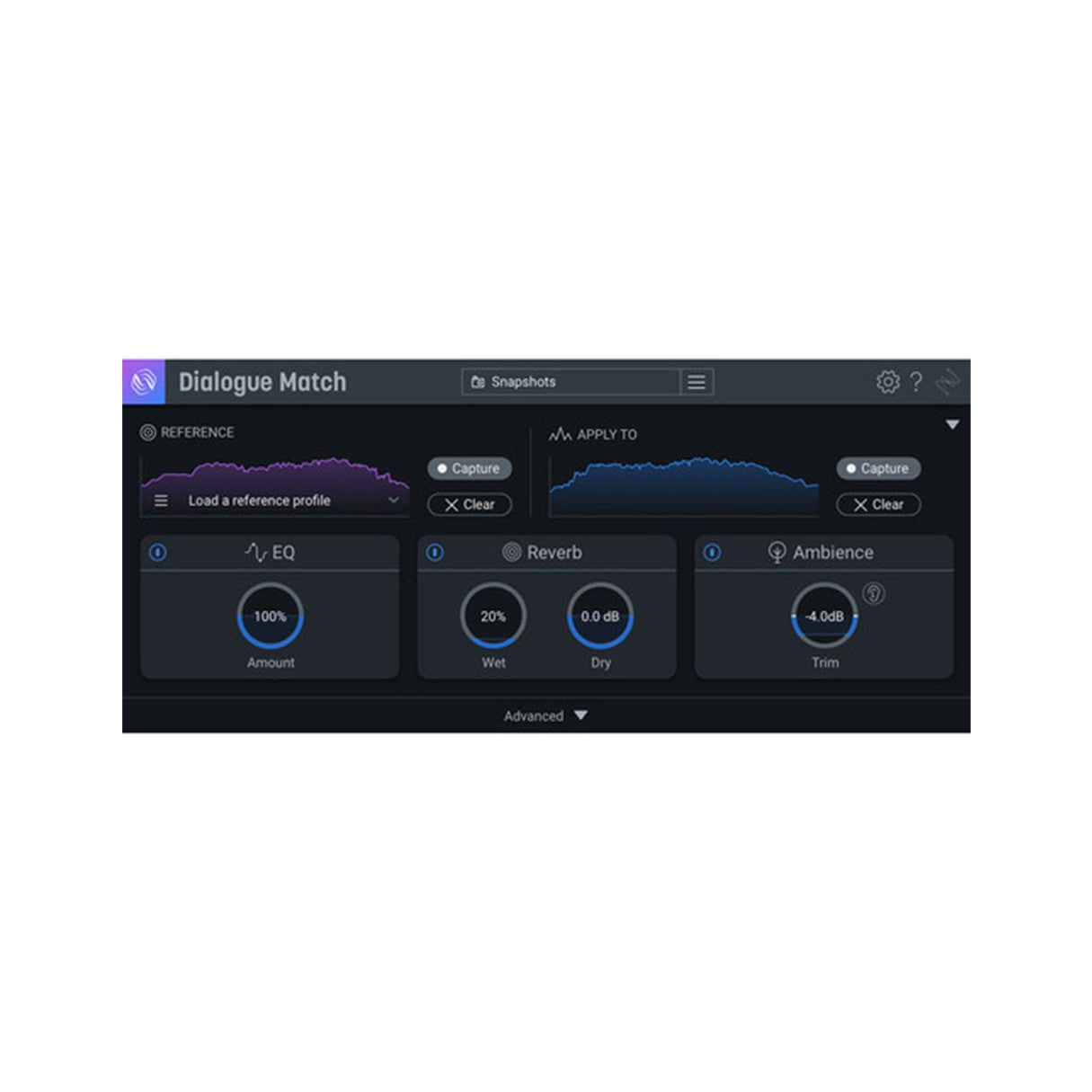 Leveraging parametric EQ matching mechanics, Dialogue Match matches the tonal and spectral aspects of any piece of dialogue and applies it to another.