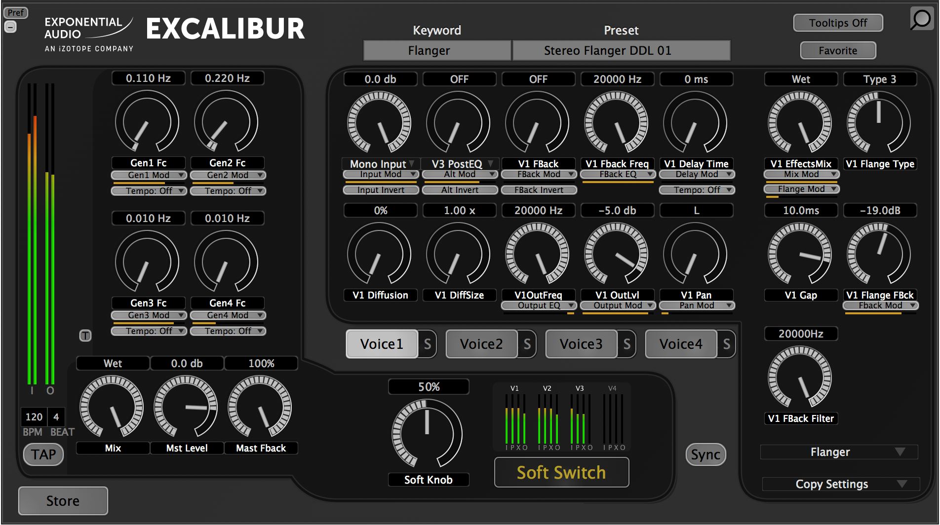 With four discrete Voice modules, Excalibur lets you get very specific about how and where its effects are applied to your audio. There’s no limit to the textures you can create with Excalibur, especially by combining and modulating effects using its unique signal routing capabilities and tempo-syncable LFOs. Excalibur is designed to give you unprecedented control over the sounds you create, and the virtual four-channel patchbay does exactly that.