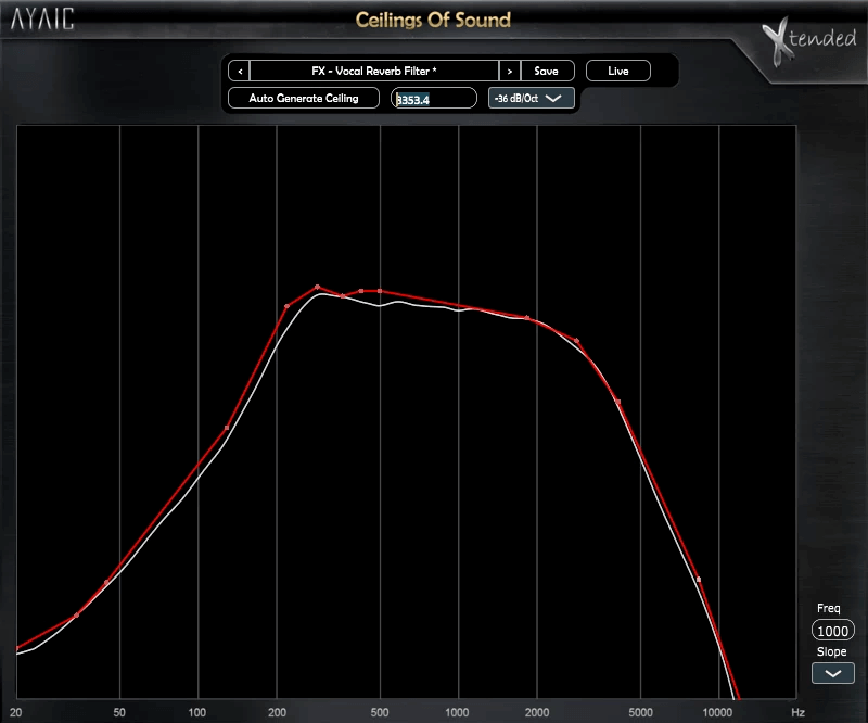 Ceilings Of Sound Xtended takes this unique way of dealing with your sound to a higher level. With 15 user-definable ceiling bands containing 49 noise-slopes each, it allows you to create detailed sonic-ceiling shapes that make the equalization process even faster. Simply use your favorite software or hardware equalizers to equalize along the created ceiling shape with this ultimate equalization tool.