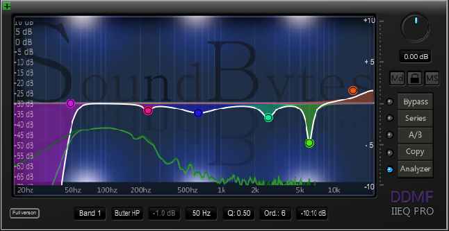 7 Butterworth filters with variable slopes between 6 and 60 dB / oct.