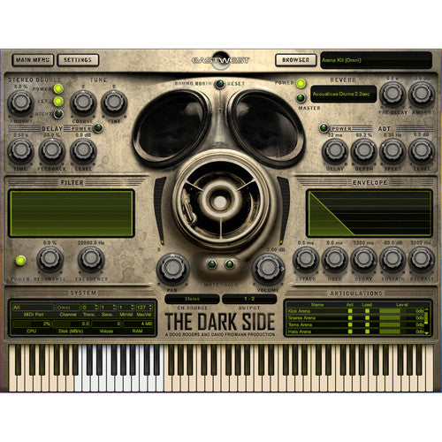 The Dark Side from EastWest is a virtual instrument created and produced by Doug Rogers (EastWest) and David Fridmann (MGMT, The Flaming Lips). It is an unconventional and exciting collection of instruments, some dark and eerie, and some which have been purposely – and skillfully – mangled, distorted, or "effected" out of all recognition.