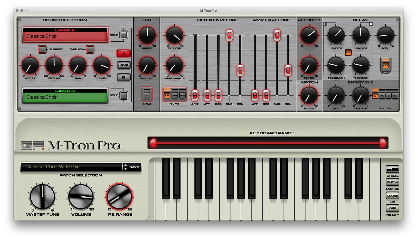 The GForce M-Tron Pro is a spot-on emulation of the legendary Mellotron, the tape-based keyboard heard on recordings by such artists as The Beatles, David Bowie, Led Zeppelin, and Radiohead. M-Tron Pro offers a huge 3.5GB sound library with more than 160 tape banks, and it includes 19 of the first M-Tron tape banks, all remastered at the acclaimed Abbey Road Studios. You also get 45 new sample sets and more than 500 specially created patches. For Mellotron sound with digital ease, you need GForce's M-Tron Pro. Note: AAX version is Mac compatible only.