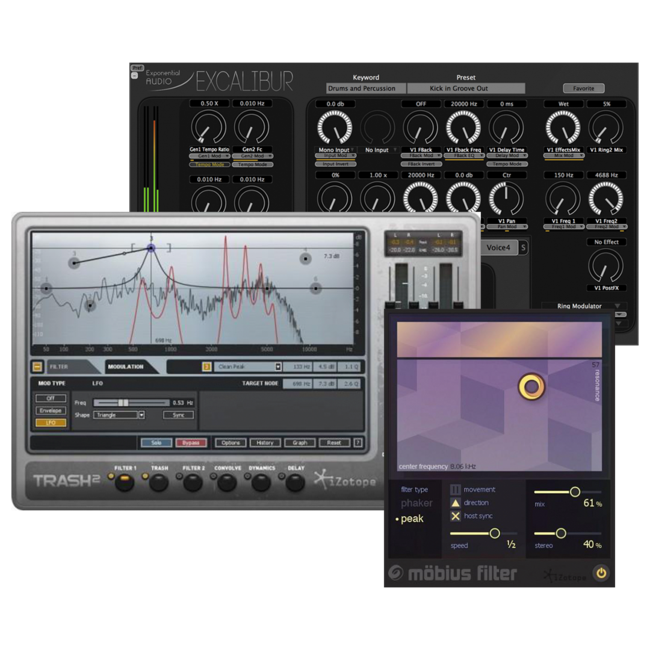 A stereo multi-effects plug-in unlike any other. With several modulation, pitch-shifting, and dynamics effect modules, Excalibur has the creative tools to tackle any music production, post production, or sound design project. Four independent voice oscillators can subtly change the timbre of your recordings or drastically transform any audio source with swirling kinetic effects.