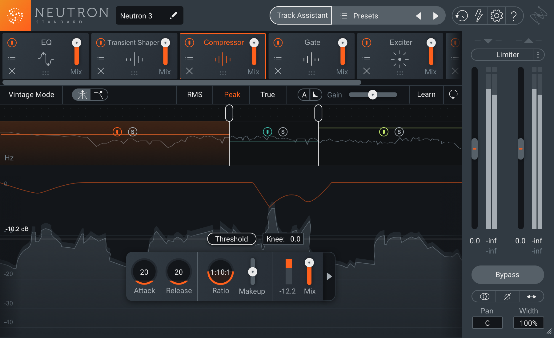 Sculptor is the be-all end-all of audio goodness. For sweetening, fixing, and even creative applications, it’s like having a per-band army of compressors and EQs working tirelessly to shape your track. Sculptor talks with Track Assistant to understand the instrument you’re working with and gives real-time feedback to help shape your track. Sculptor can also work with any chosen instrument profile, letting you experiment with new sounds and make something entirely your own.