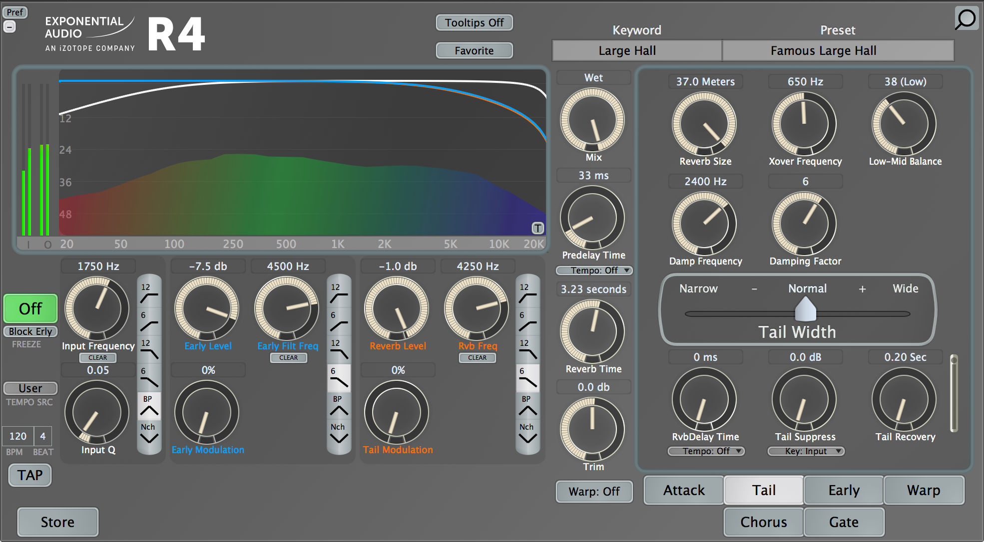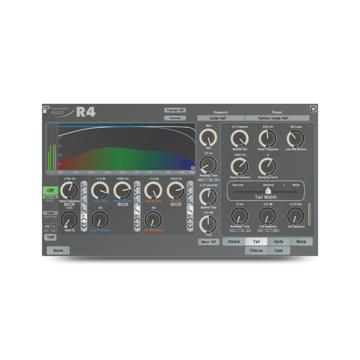 R4 delivers the historic warmth of time-tested reverb hardware units—all within a CPU-efficient algorithmic reverb plug-in with expanded creative control. Add personality and depth to your music with reverb designed to color your mixes without compromising clarity. For less traditional projects, use creative effects like Warp and Freeze to mangle your reflections beyond recognition and create twisted time effects to take your audience by surprise.