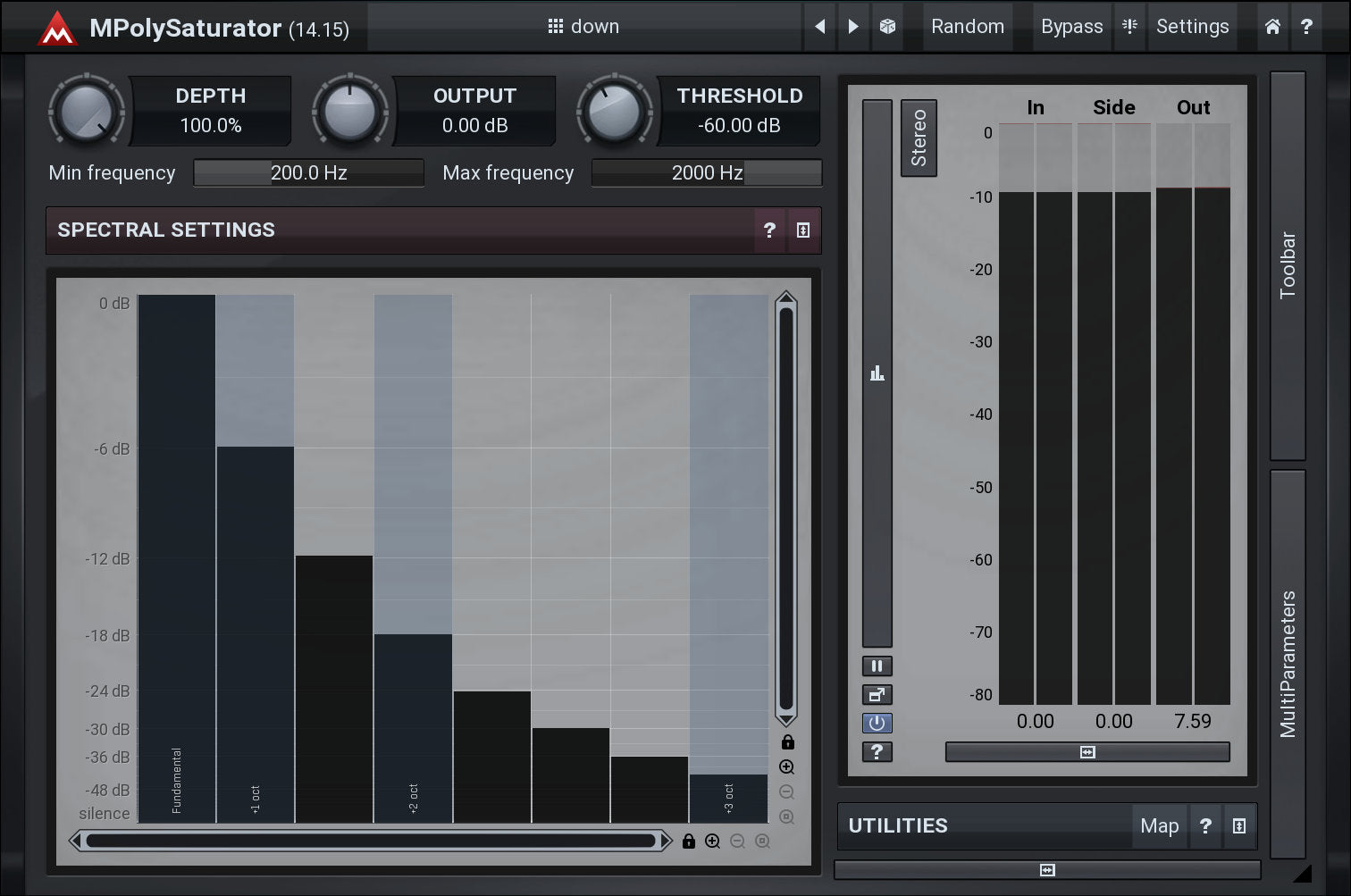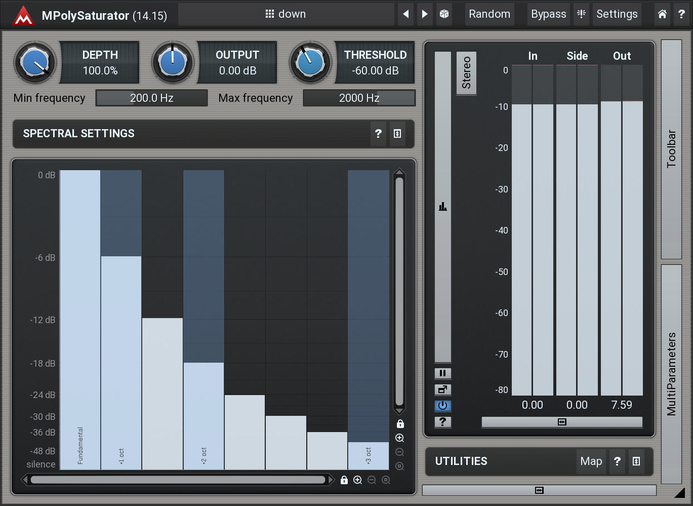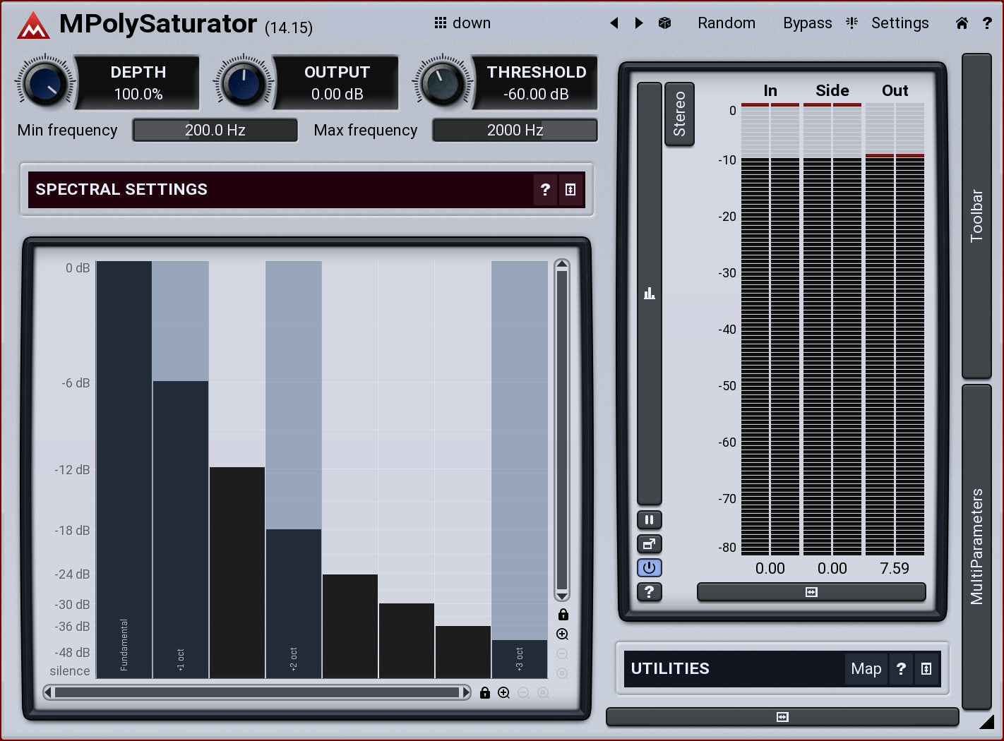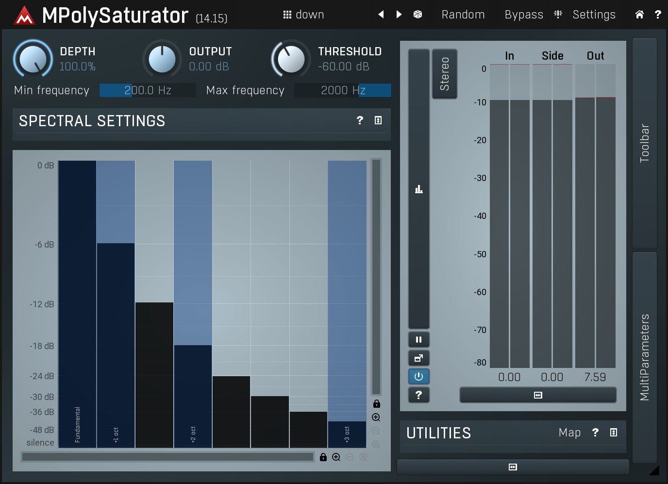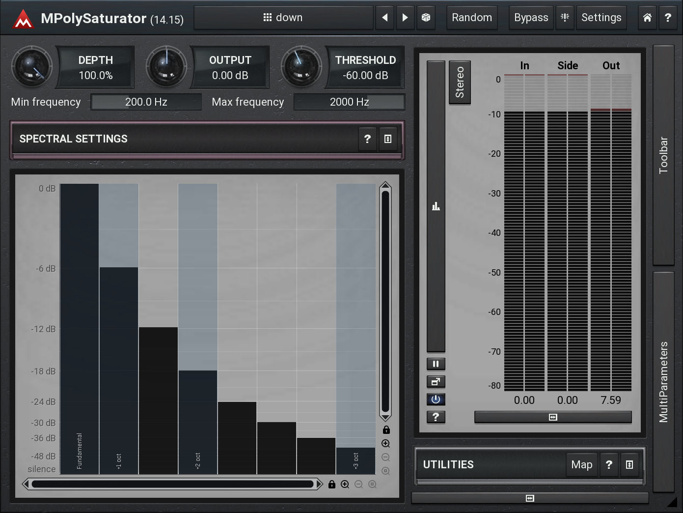 MPolySaturator is a unique spectral saturation plugin, which generates harmonics for every single frequency in your signal, making the results sound richer. But unlike classic saturation, it does not suffer from the dirtiness when processing complex signals.