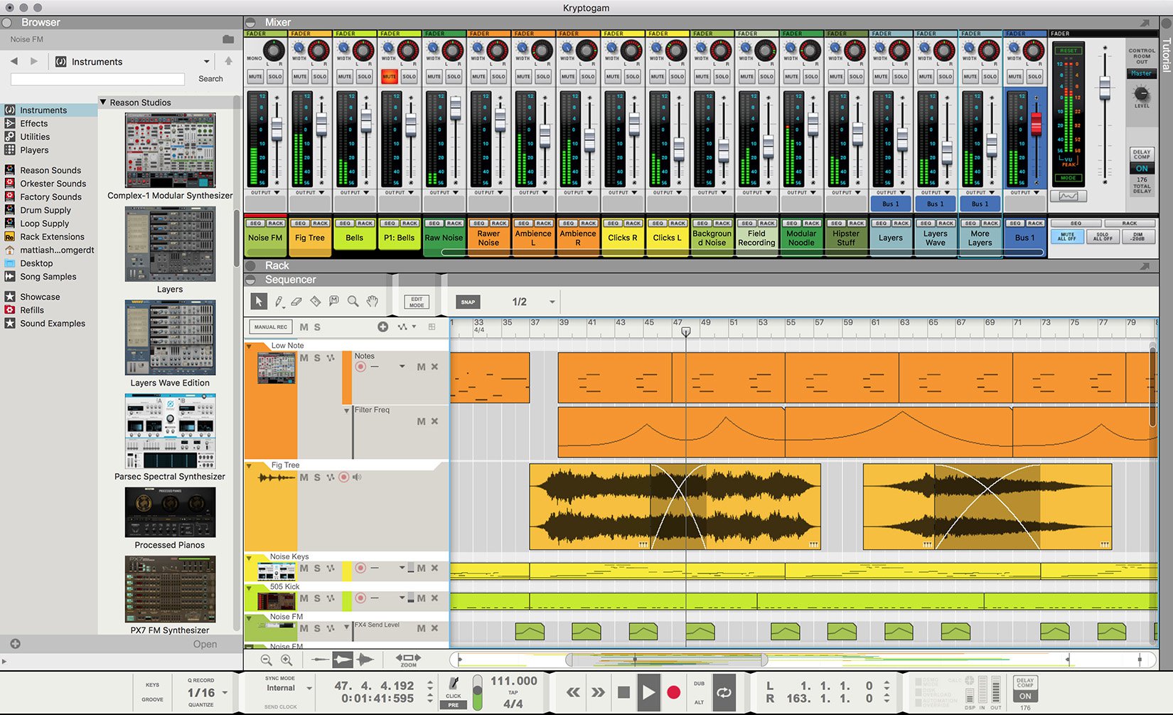 At the heart of Reason is a virtual rack where you craft the sounds your music needs, from scratch or from Reason’s huge library of sounds. Synthesizers, instruments and effects, Reason 11 Suite covers every need from the synthetic and electronic to acoustic and organic.