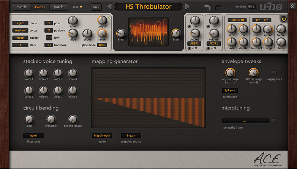 Three global effects: Stereo Chorus, Delay and Tone Control